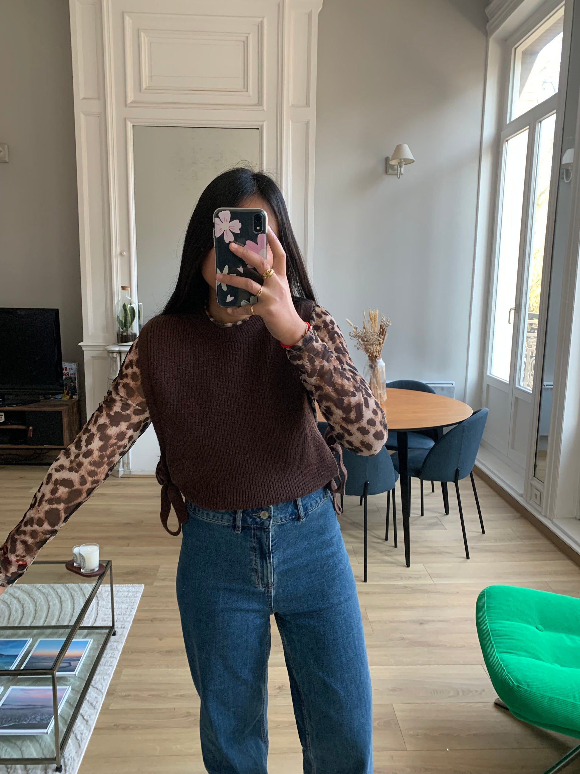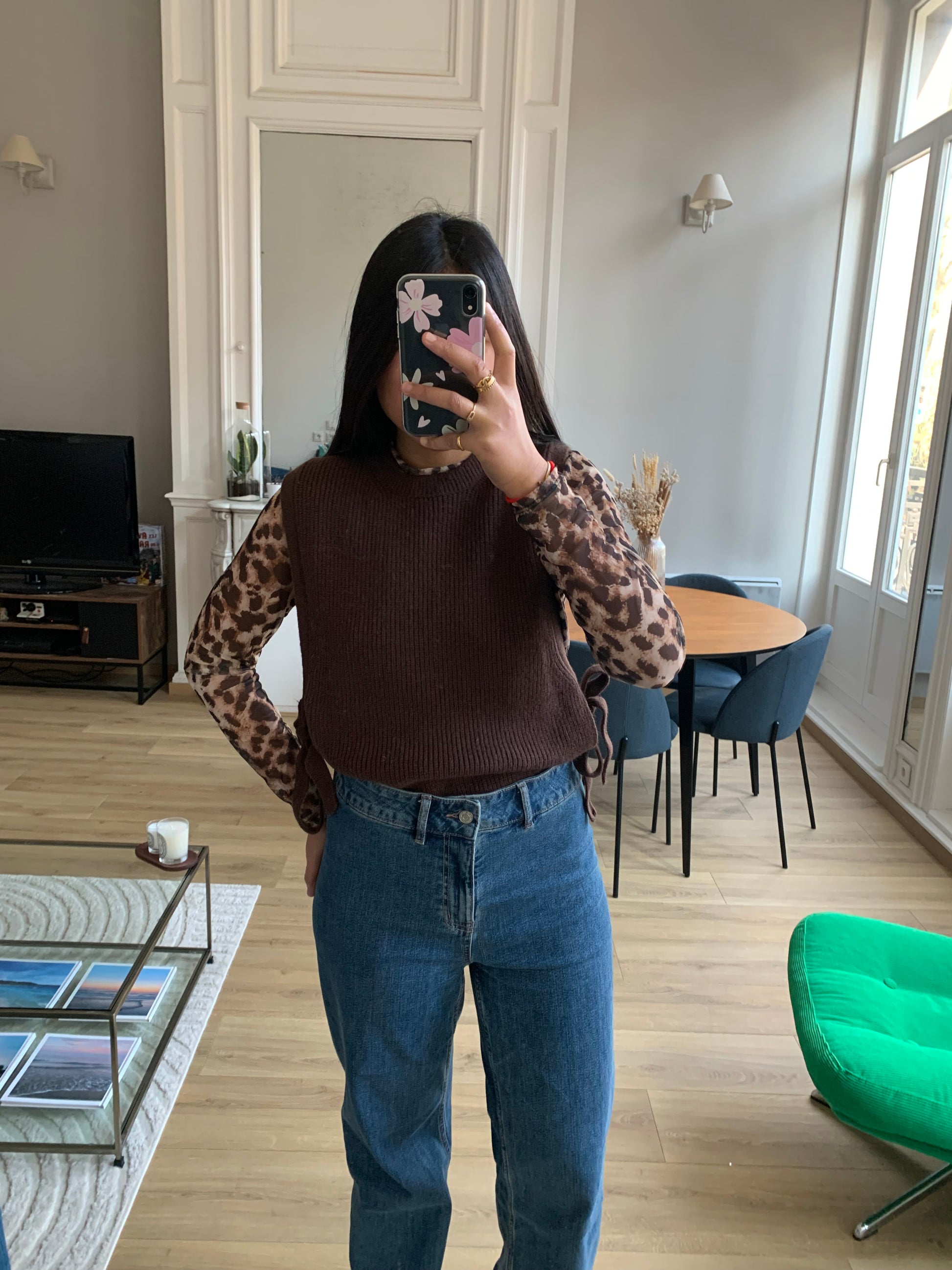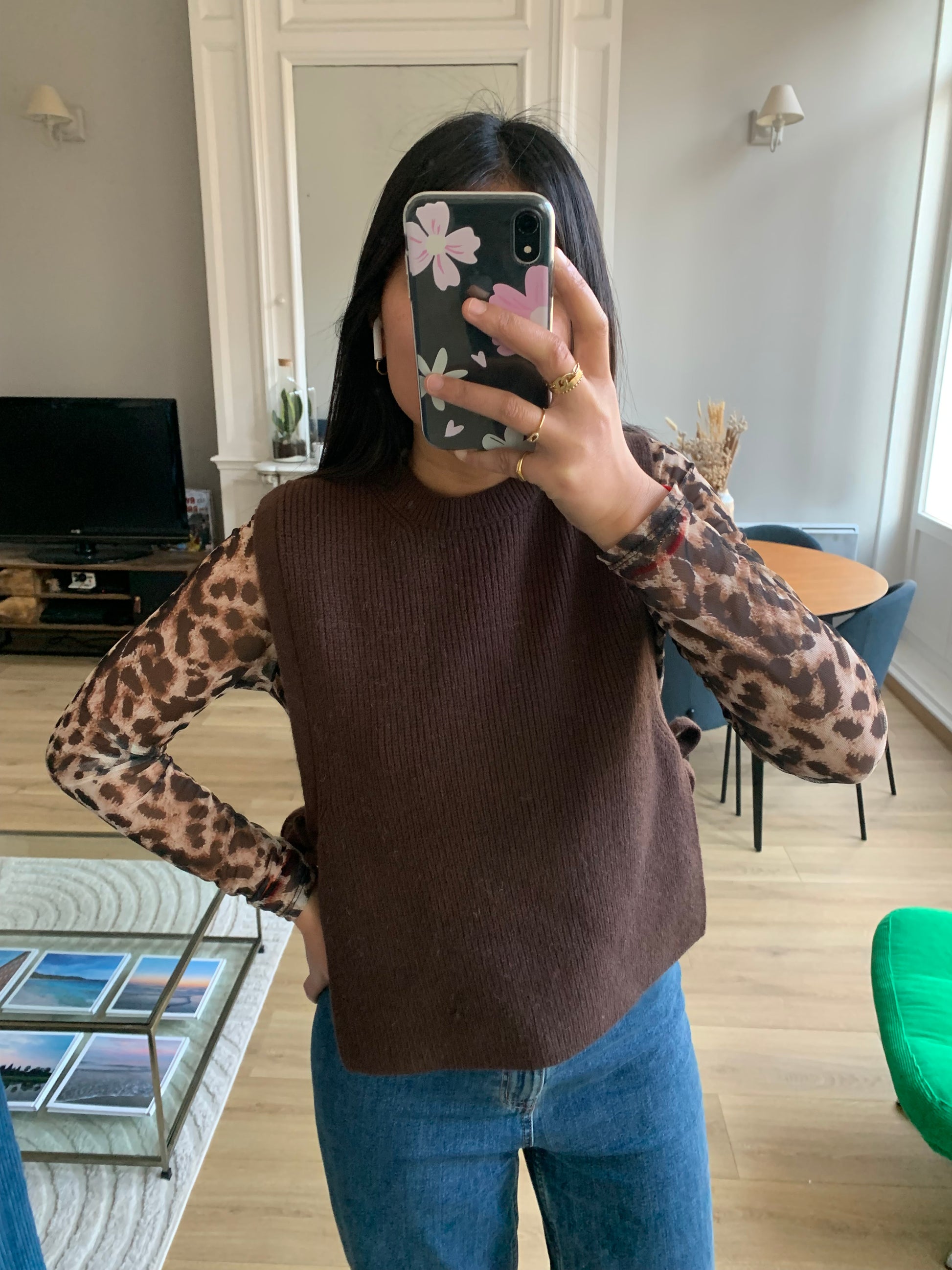 • Mix & Match avec le pull sans manche marron MAHAULT